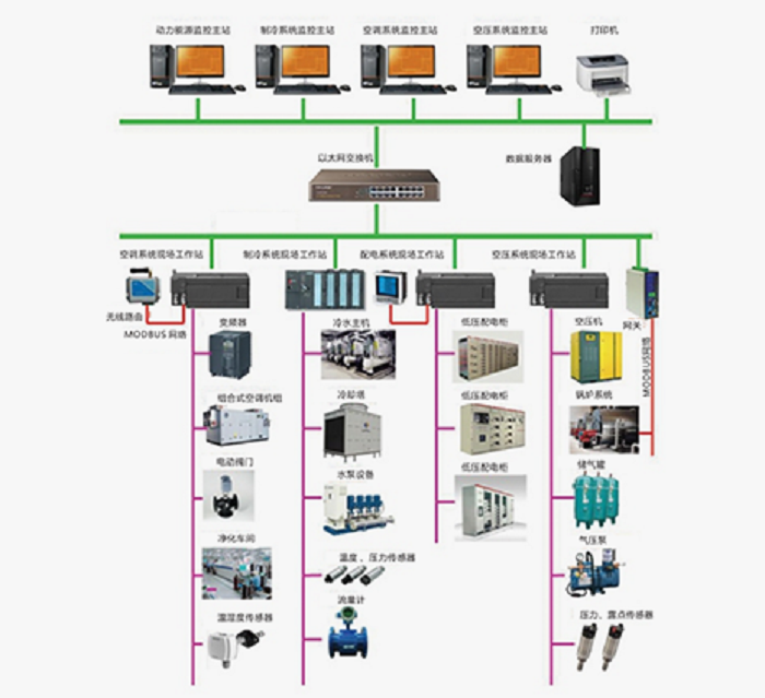 動力能源集控系統(tǒng)是整個工業(yè)廠房動力能源的監(jiān)控管理中心,應要應用于制藥廠、煙廠、電子潔凈廠房等區(qū)域;其可實現(xiàn)管理與控制數(shù)據(jù)一體化,各分、子系統(tǒng)的高度集成,無人值守全自動控制,能源優(yōu)化組合等功能;其監(jiān)控的子系統(tǒng)可包含以下系統(tǒng):生活熱水子系統(tǒng)、變配電子系統(tǒng)、空壓(真壓)子系統(tǒng)、制冷子系統(tǒng)、空調子系統(tǒng)、熱力子系統(tǒng)、給排水子系統(tǒng)、天然氣子系統(tǒng)、工廠工藝冷卻水子系統(tǒng)、鍋爐子系統(tǒng)等。