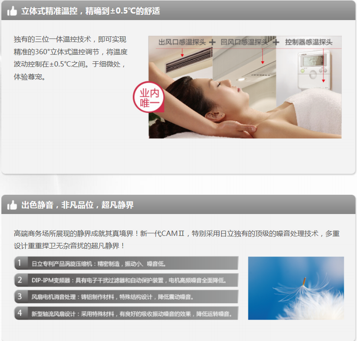 日立中央空調(diào)時(shí)代新生,為夢(mèng)想而來(lái)。日立懂得高端商業(yè)空間的高品質(zhì)、高舒適度的新生要求,專為中小型商鋪開(kāi)發(fā)新一代CAMⅡ商用中央空調(diào)(Commercial Advanced Multi Air-condition)。通過(guò)日立優(yōu)越的多聯(lián)機(jī)先進(jìn)技術(shù),以豐富多彩的室內(nèi)機(jī)產(chǎn)品形式、多種人性智能化設(shè)計(jì)、多項(xiàng)領(lǐng)先的節(jié)能技術(shù)以及智能強(qiáng)大的控制系統(tǒng),全方位實(shí)現(xiàn)中小型商用空間對(duì)環(huán)境時(shí)尚舒適、高效節(jié)能等高品質(zhì)夢(mèng)想。 CAMⅡ 變頻多聯(lián)機(jī)系列產(chǎn)品特點(diǎn): 1、美觀舒適,高檔典雅,高品質(zhì)環(huán)境必備 機(jī)身厚度小,僅為270mm,節(jié)省安裝控件;安裝靈活,滿足多種安裝要求,用心締造高端完美空間,提升空間品質(zhì)。 2、美觀舒適,高檔典雅,高品質(zhì)環(huán)境必備 機(jī)身厚度小,僅為270mm,節(jié)省安裝控件;安裝靈活,滿足多種安裝要求,用心締造高端完美空間,提升空間品質(zhì)。 3、同徑化冷媒管道系統(tǒng),節(jié)省二次裝修投資 獨(dú)有的同徑化冷媒管道施工技術(shù),將來(lái)如果室內(nèi)機(jī)型號(hào)變更,不需改動(dòng)制冷劑主配管,保證室內(nèi)裝飾不被破壞,減少二次裝修投資。 4、同徑化冷媒管道系統(tǒng),節(jié)省二次裝修投資 獨(dú)有的同徑化冷媒管道施工技術(shù),將來(lái)如果室內(nèi)機(jī)型號(hào)變更,不需改動(dòng)制冷劑主配管,保證室內(nèi)裝飾不被破壞,減少二次裝修投資。 5、系統(tǒng)運(yùn)行能效高,為業(yè)主節(jié)省更多費(fèi)用 領(lǐng)先的I...